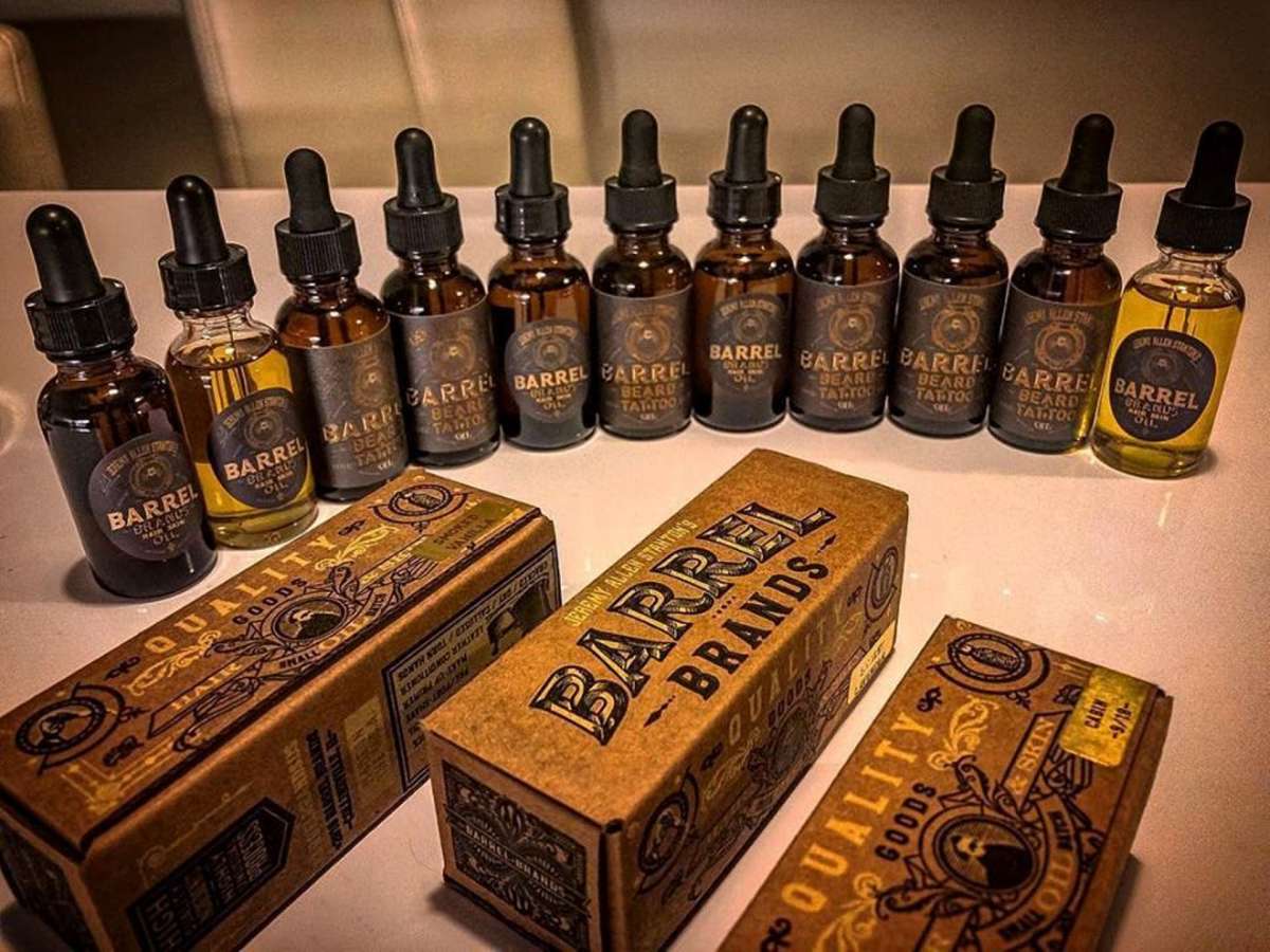 Barrel Brands produces a line of small batch barrel-aged hair and skin oils made from a base pure vitamin E oil and a blend of other natural ingredients.