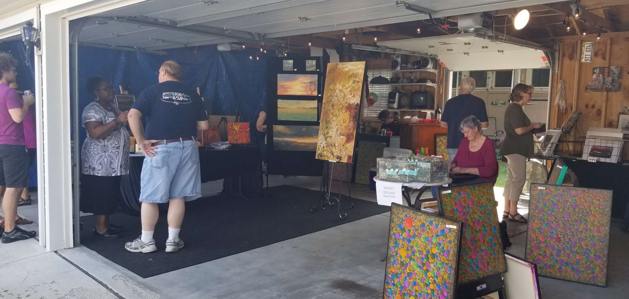 The event celebrates art and artists in a casual, family-friendly neighborhood setting and encourages residents and visitors to explore Forest Park. Artists display their work without entry fees or a juried selection process. Residents host artists in their garages in a casual "art reception" atmosphere, and host garages are set up in clusters for easy navigation.