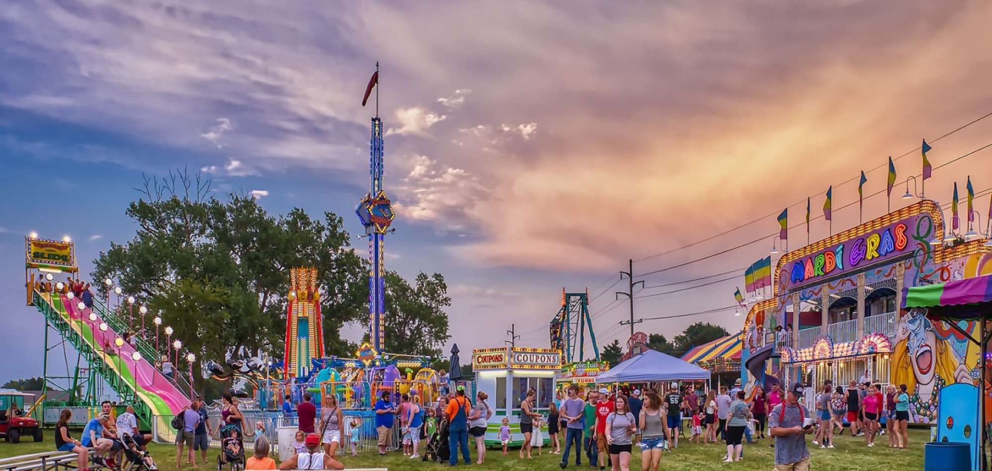 Fair food including deep-fried everything, funnel cakes, ice cream, shaved ice, chili dogs, corn dogs, burgers, Philly cheesesteaks, and comfort food you can't find anywhere but fairgrounds will give you the fuel to keep the night young!