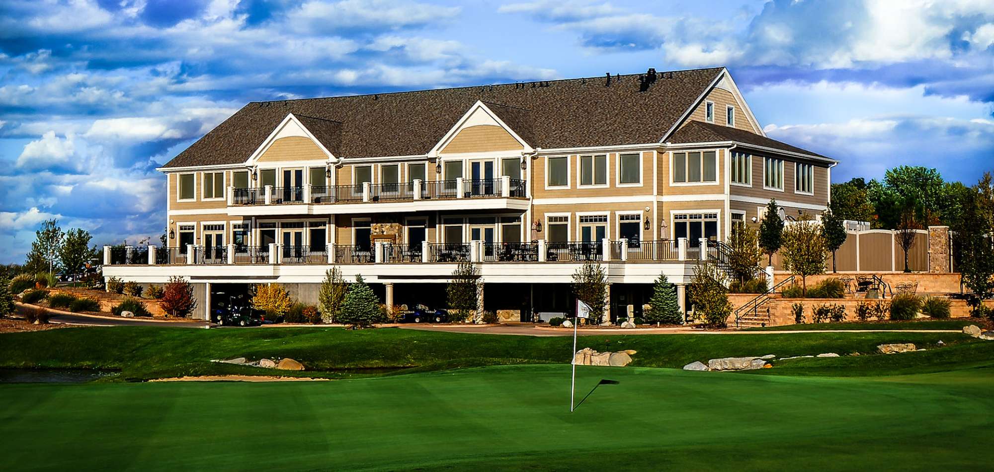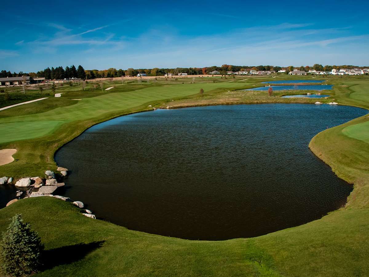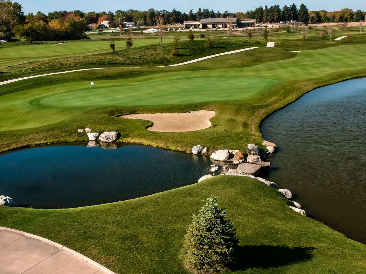 An 18-hole D. A. Weibring/Wolfard designed championship golf course with a 25,000 sq-ft clubhouse that offers banquet seating up to 400 people in one room. Introducing a brand new "classic" golf course to the Tri-County area focusing on offering "playable" golf for every skill level. Stunning panoramic views overlooking this links course make for an amazing backdrop for any special event. Our tag line "Where You're Always Welcome" says it all. Hang out for a while in the clubhouse - even if you don't play golf very much but like to watch. We have the very best view of golf in all of Central Illinois from our two level outdoor deck that peers out to the 9th and 18th greens tucked on opposite sides of our beautiful clubhouse chain of lakes. We intentionally brought these two greens as close to the clubhouse as possible so that everyone can enjoy watching golf while relaxing on the decks or inside the clubhouse.