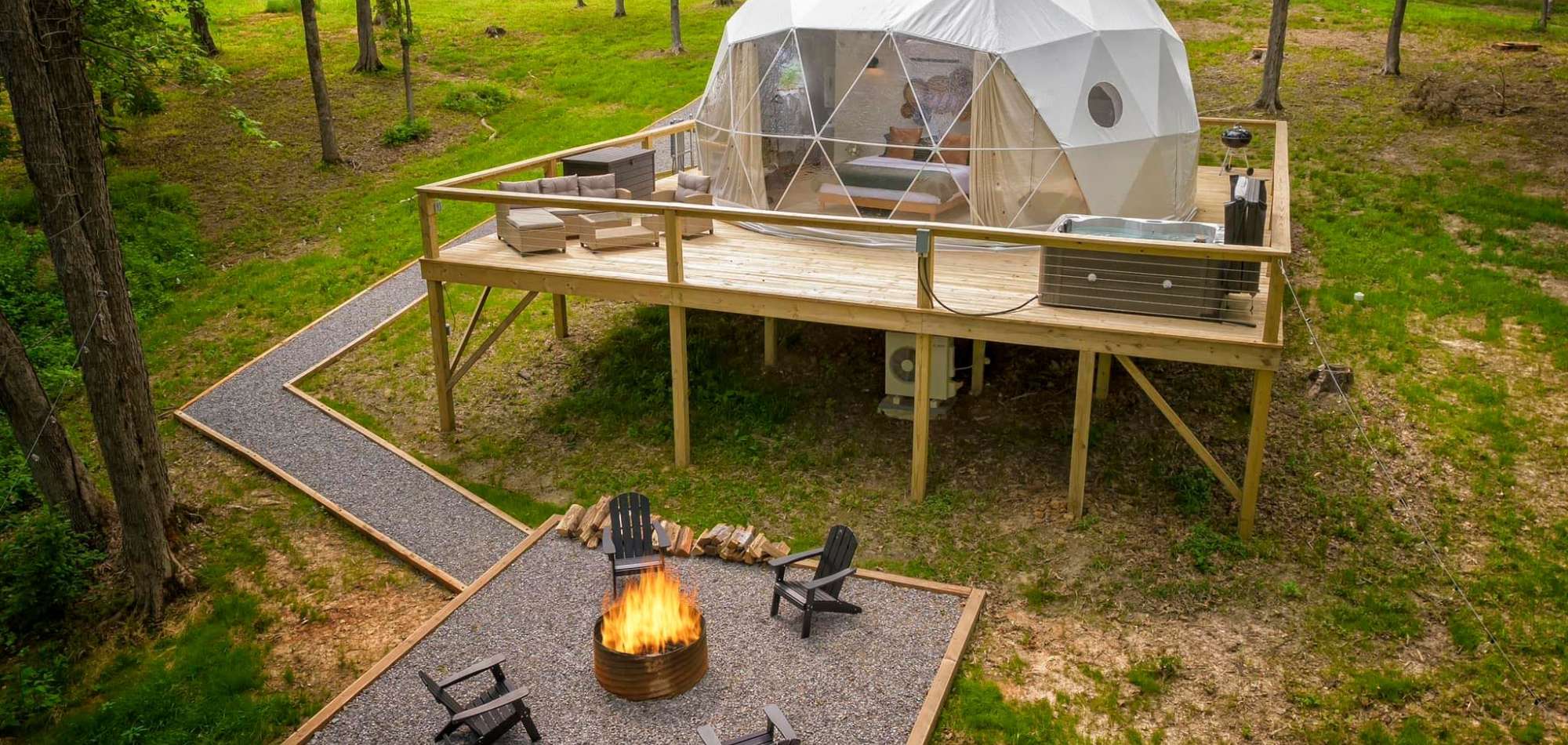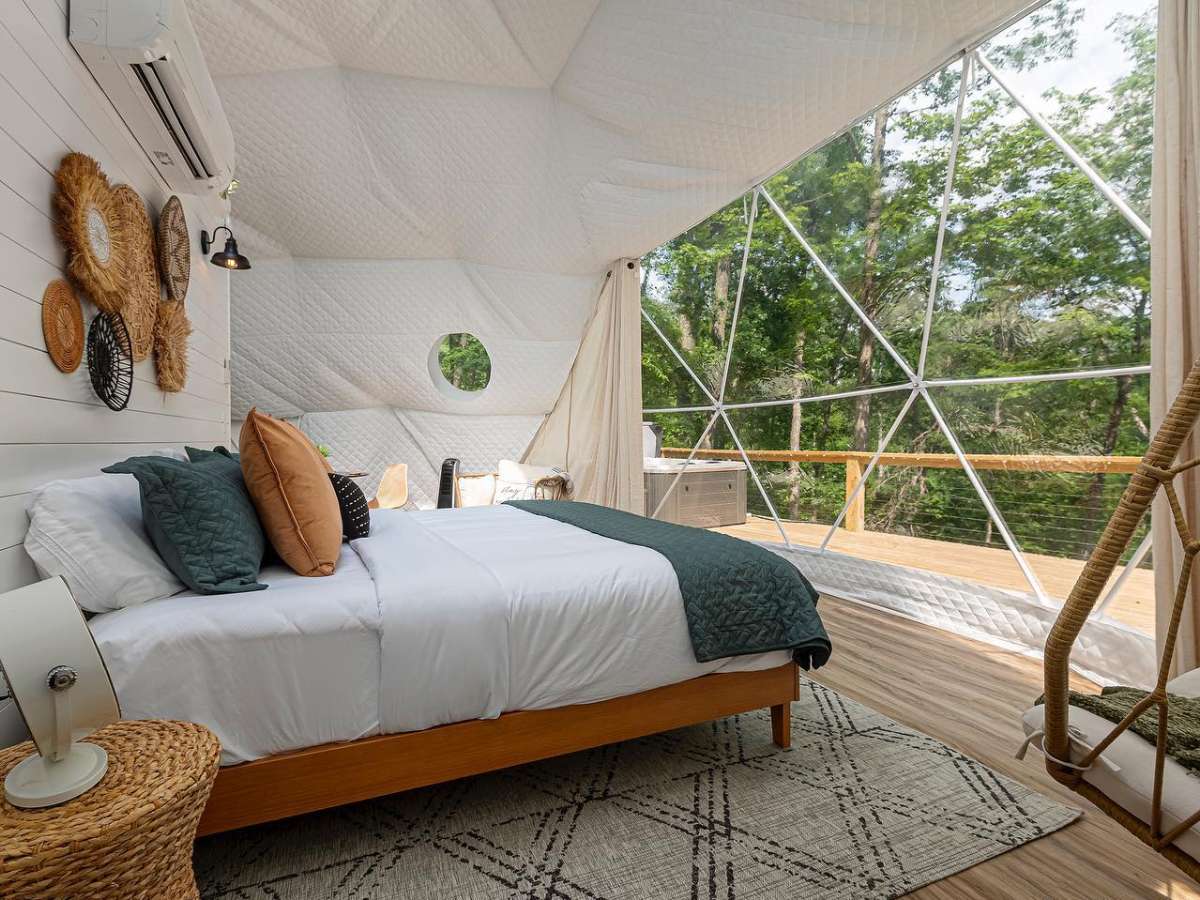 Shawnee Hills Glamping is a luxury camping dome that offers a unique and memorable way to experience the great outdoors. This dome is designed to provide a luxurious and relaxing camping experience, while still allowing guests to feel connected to nature. Enjoy panoramic views of the surrounding scenery from inside the dome, thanks to the large windows and skylights.