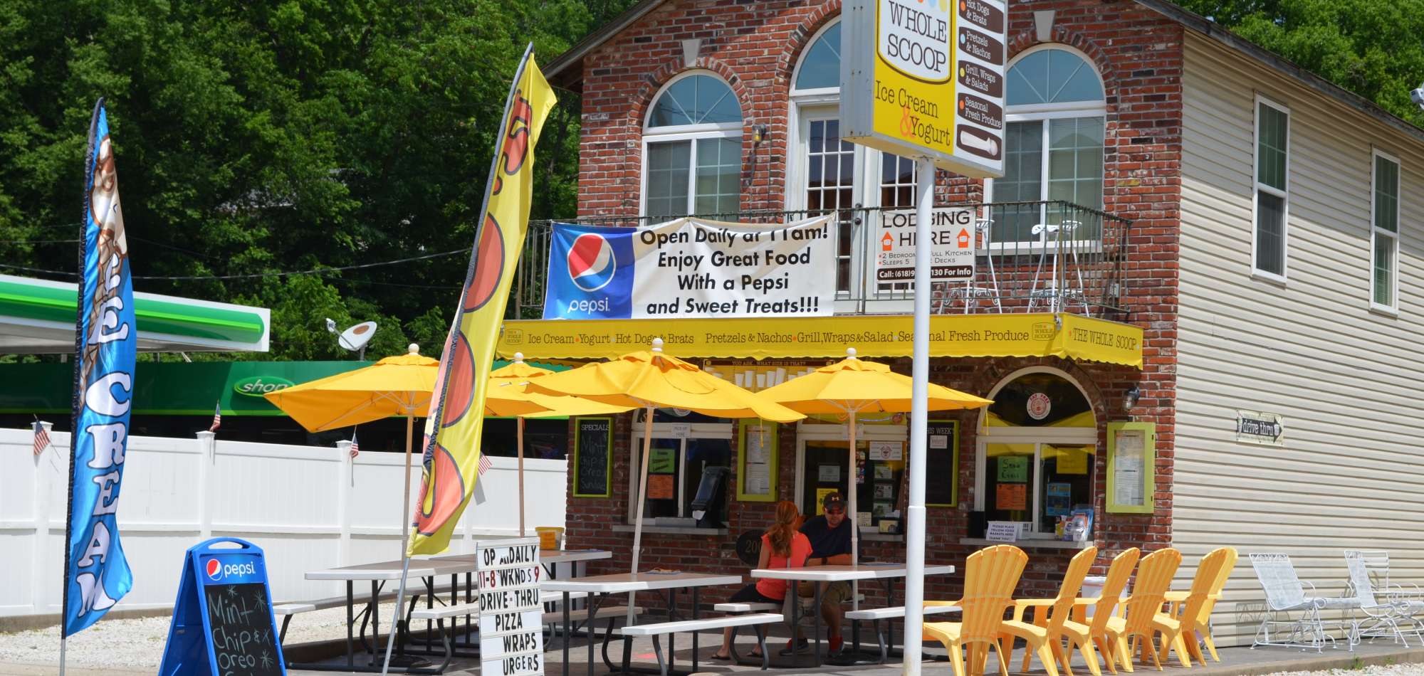 That's The Whole Scoop's newest version of their signature sundae called the "Life Boat". And it's not just sweet treats at The Whole Scoop. From secret recipe marinated chicken in the Chipotle Chicken Wrap to Mom's Recipe Chili, great homemade eats abound. Located in historic downtown Grafton, The Whole Scoop is a great place to stop during a day of shopping and river watching.