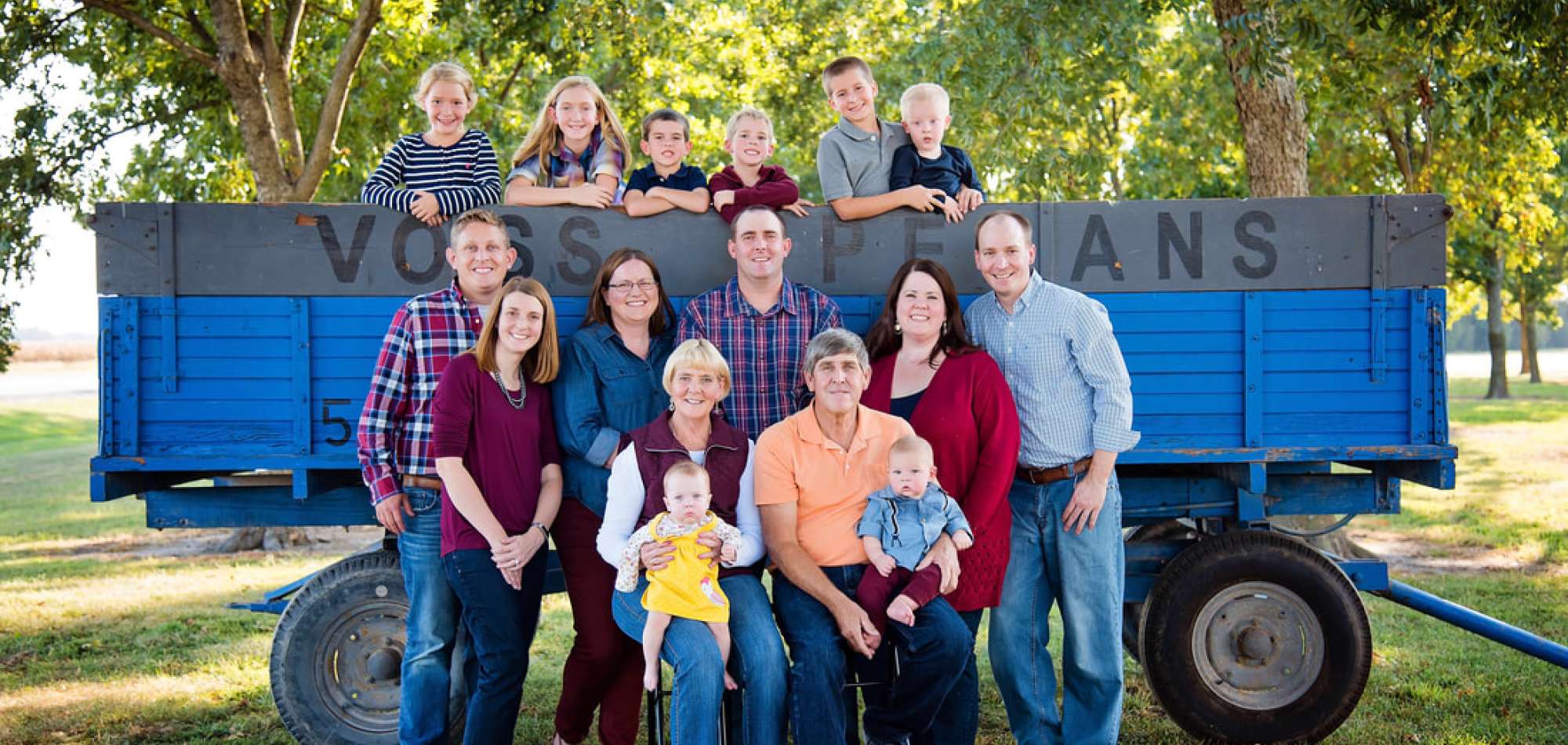 We are proud to be a family operated Pecan farm. 100% of the work is performed by the Voss family and a couple relatives. From trimming trees, mowing pecan orchards, shaking trees, picking up sticks, harvesting, sorting, cleaning, cracking, and stocking the farm store shelves. We have 4 generations of family working to bring you a farm fresh product that we know you will love.