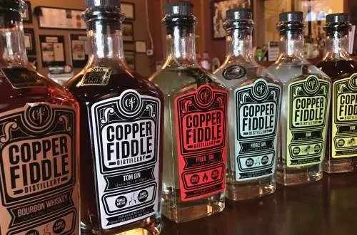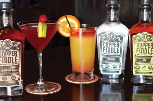 At the distillery itself, Copper Fiddle hosts tours, tastings and even live music every Friday and Saturday night, just feet from the aging barrels. Both Hernandez and Robinson have made a point of letting their artisanal inspiration spill over into the bar. Maybe that's why the master bartenders take traditional cocktails to new heights—as when they set the ingredients of a Moscow Mule ablaze before pouring the drink over ice. This fun twist on a traditional cocktail is just one of the unique approaches to drinks you'll find at Copper Fiddle's bar.