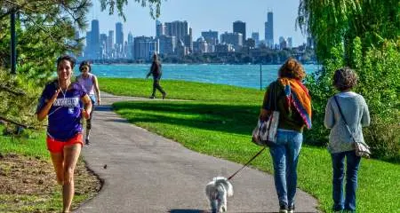 After breakfast, head west in Glencoe to the Chicago Botanic Garden, the 5th largest public garden in the U.S., which has outdoor fun for the family! The Grand Tram Tour, open through late fall, lets you relax through a 2.3-mile narrated tour of the garden’s highlights including the Japanese Garden and spectacular views of the 81 acres of the water spaces. Don’t miss Night of 1,000 Jack-o'-Lanterns where more than 1,000 hand-carved pumpkins—some as large as 150 pounds—will light up the night at this Halloween event. Lightscape returns mid-November to early January, a holiday event which sold out last year. Experience a captivating world of light, color, and sound. Walk through the sparkling Cathedral of Light, watch lights glimmer and dance, and tune in to the playful choir of singing trees.