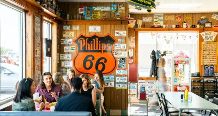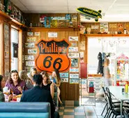 Time for lunch. Cozy Dog Drive In (IM) pioneered a great Midwestern treasure: the corn dog. For peak Illinois Americana, grab a Cozy Dog or a bowl of chili, then take in the historic Route 66 decor and memorabilia that lends this iconic establishment its vintage charm.