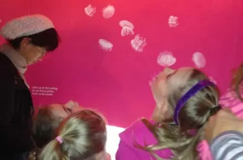 After filling up on breakfast, we headed over to the Shedd Aquarium. Located on the shores of Lake Michigan, this is one of my girls’ favorite places in Chicago. Our favorite attraction was a tie between the beautiful beluga whale and her baby (so cute) and the jellies….the latest exhibit at the Shedd. The jellies exhibit was so colorful and it amazing to see these unusual creatures up close. Also, it was a great educational experience because we learned about jellies from all over the world! Oh, and we couldn’t forget the sea otters, who loved to play and show off to us from behind the glass.