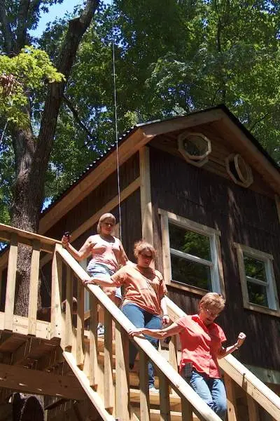 Get a birds-eye view of the forest when you overnight at Ten Acre Treehouses, which has a two-story tree house in Nauvoo. The 400-square-foot Captain’s Quarters comes complete with an outdoor shower, kitchen, mini library and deck for grilling. Hiking trails weave around the 28-acre property.