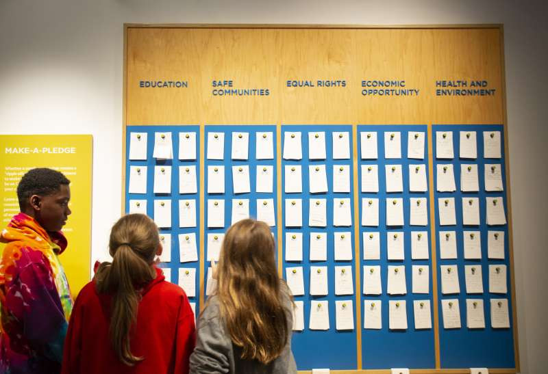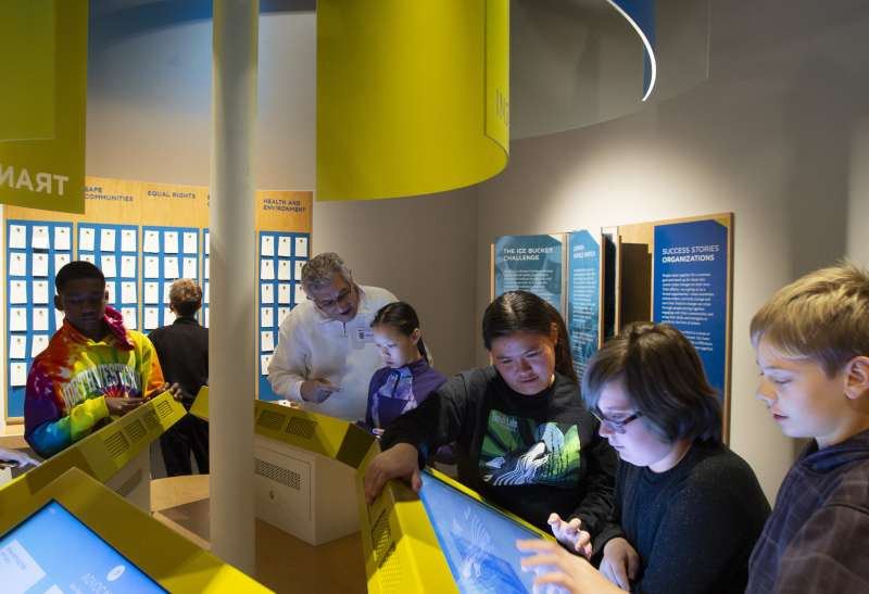 The dangerous silence of bystanders becomes a recurring theme at the museum. Instead, visitors are encouraged to be “upstanders,” people who speak up and take action in the face of injustice. More than 70 non-Jewish families who helped rescue Jews during the Holocaust are honored at the outdoor Ferro Fountain of the Righteous. The kid-centric Make a Difference! The Harvey L. Miller Family Youth Exhibition profiles famous upstanders, such as Rosa Parks, and provides problem-solving scenarios for injustices that occur at school or around the neighborhood.
