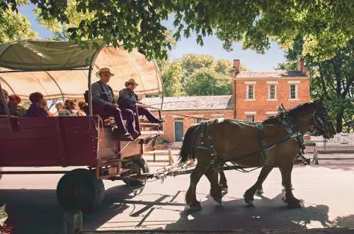 Aromas from decadent cinnamon rolls waft though the eight upstairs rooms at Hotel Nauvoo, tempting guests from their four-poster beds to join the breakfast buffet. Across the street, Grandpa John’s Nauvoo Cafe and Soda Fountain serves home-style breakfast and lunch. Enjoy a glass of wine amidst 145-year old trees and take in the vineyards surrounding the historic Nauvoo Grand Bed and Breakfast. Baxter’s Vineyards and Winery, Illinois’ oldest winery, offers free tastings and self-guided tours daily.