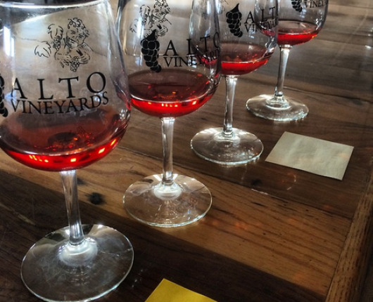 Alto Vineyards in Champaign is surrounded by lush trees and wine fields. The Alto Vineyards Tasting Room invites guests to sip on award-winning wine and taste delicious local cheeses all while relaxing in the serene atmosphere that the vineyard provides. Pro tip: Go at sunset to watch beautiful colors paint the sky around you!