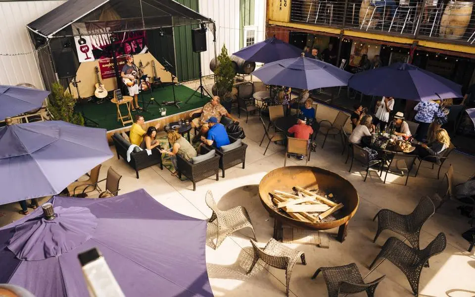 Choose a seat inside, outside or in the shade under the giant oak tree and listen to three hours of live music. The winery is family and pet friendly—everyone’s welcome.