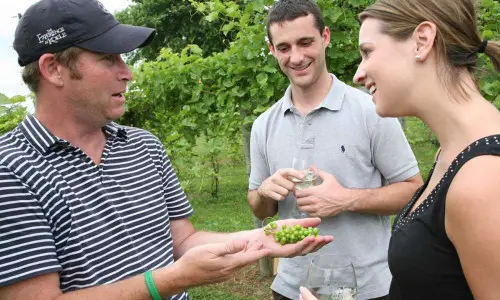 White grapes like Seyval, Vignoles, Chardonel, and Vidal Blanc tend to be up first, while reds such as Chambourcin take a little longer to reach their full flavor. Location makes a difference, too. For example, the warm days and cool nights in Southern Illinois push harvest time past that experienced further north.